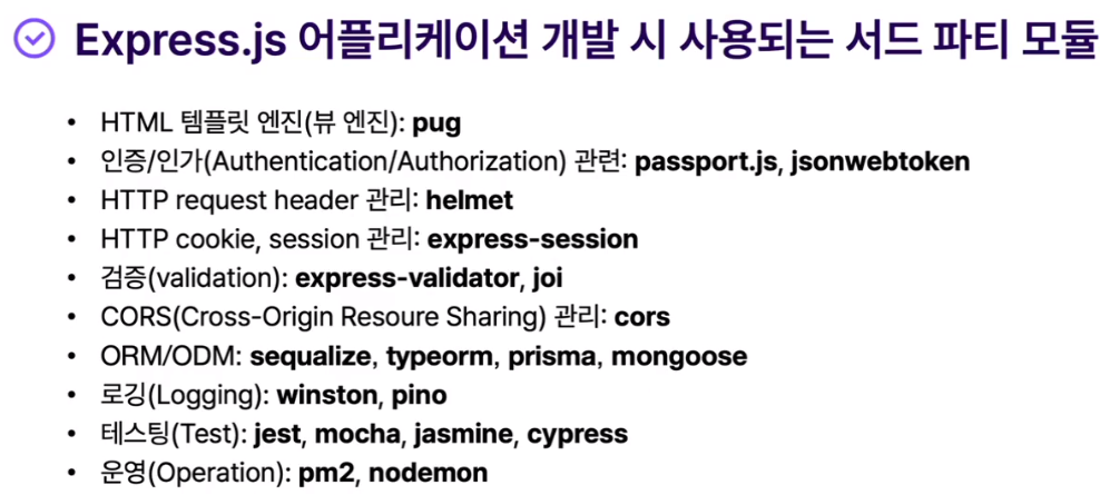 Express.js어플리케이션 개발 시 사용되는 서드 파티 모듈