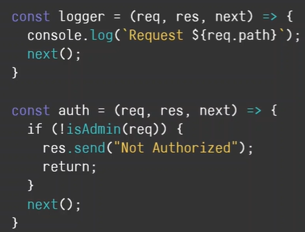 req,res,next를 인자로 갖는 함수를 작성하면 미들웨어가 된다.