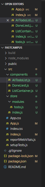 src폴더에 store폴더 -> index.js, modules폴더-> todo.js 를 만들어준다.