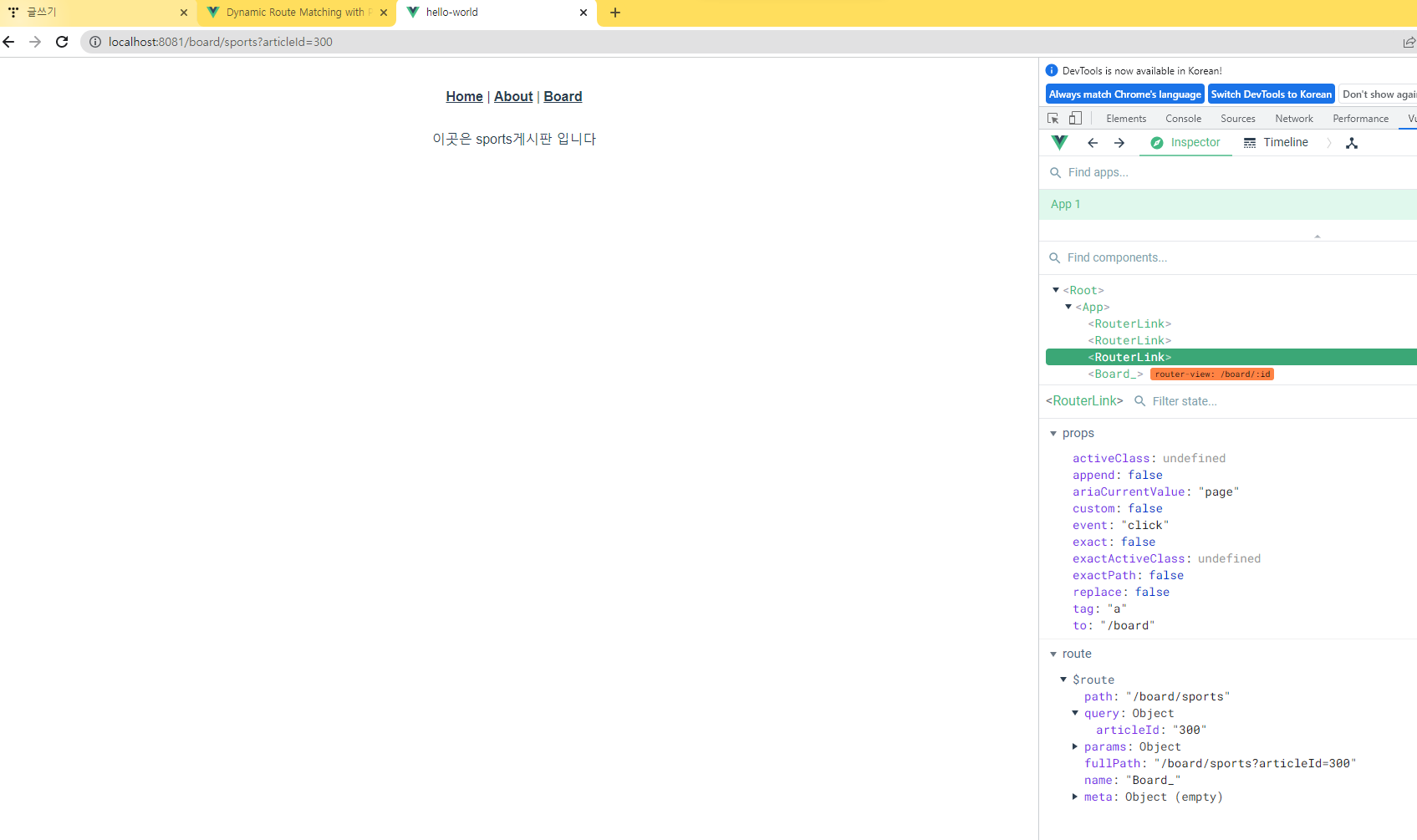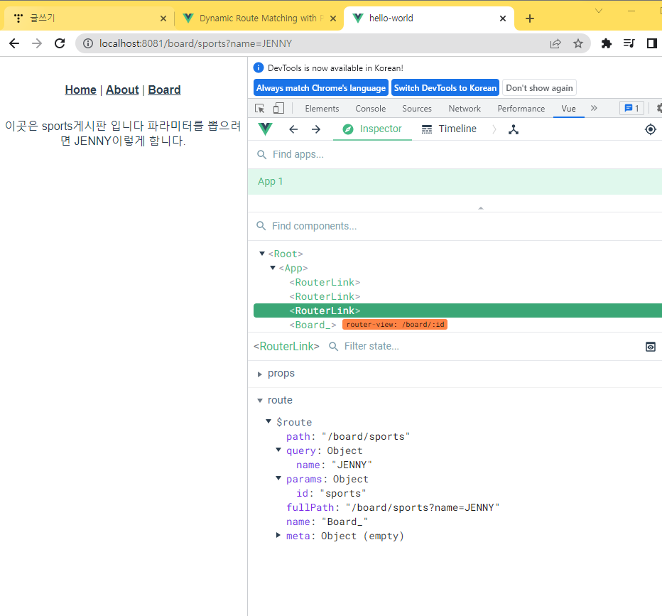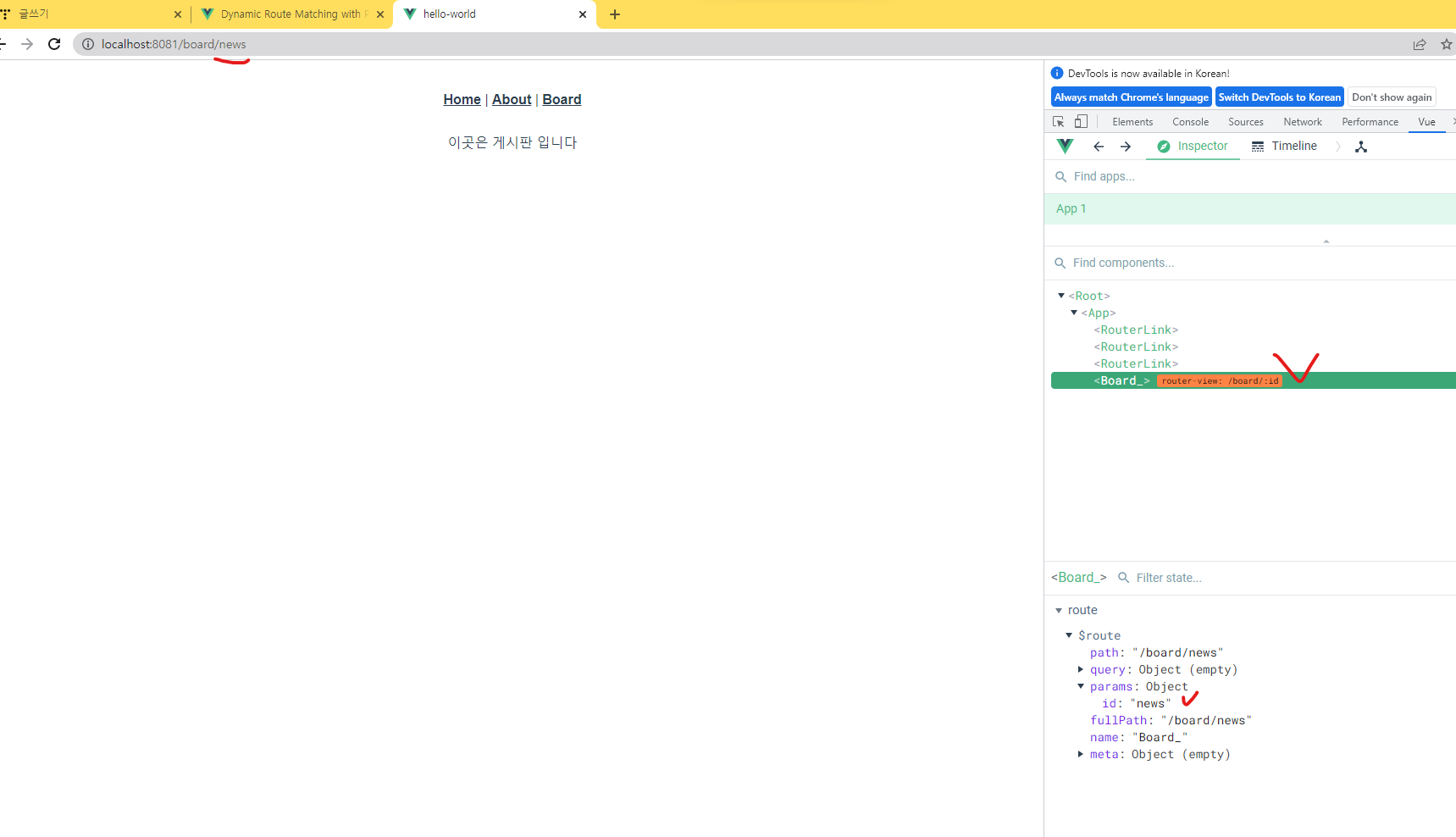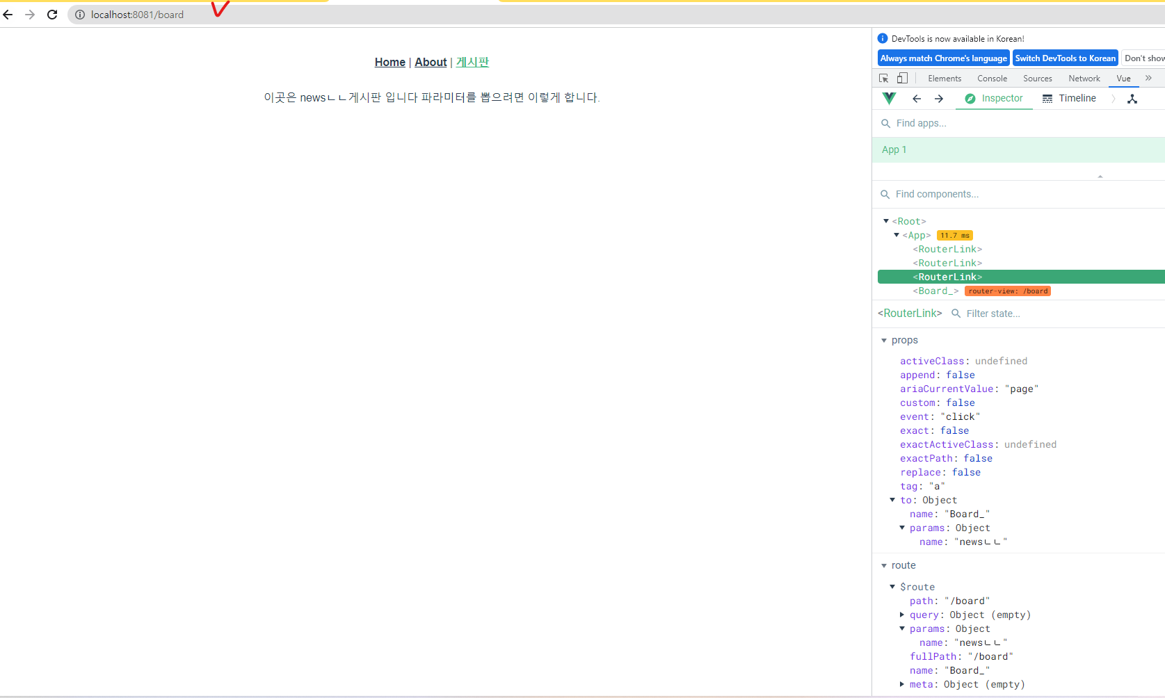 <router-link :to="{name:'Board_', params: {name: 'newsㄴㄴ'}}">게시판</router-link>