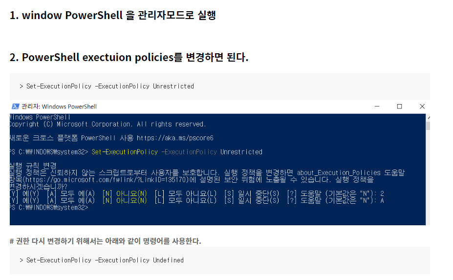 그래서 파워쉘에서 권한 모드 변경해주었음.