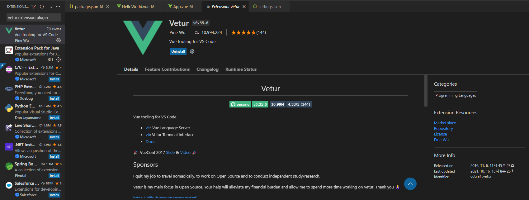 vue글자가 하얀색으로 나와서 확장프로그램 설치했다.