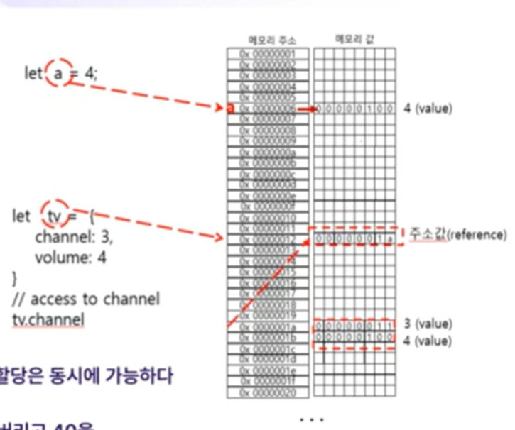 let a = 4; // a4라는 값은 RAM에 저장이 되고 RAM의 주소값이 stack의 a에 저장이 된다.