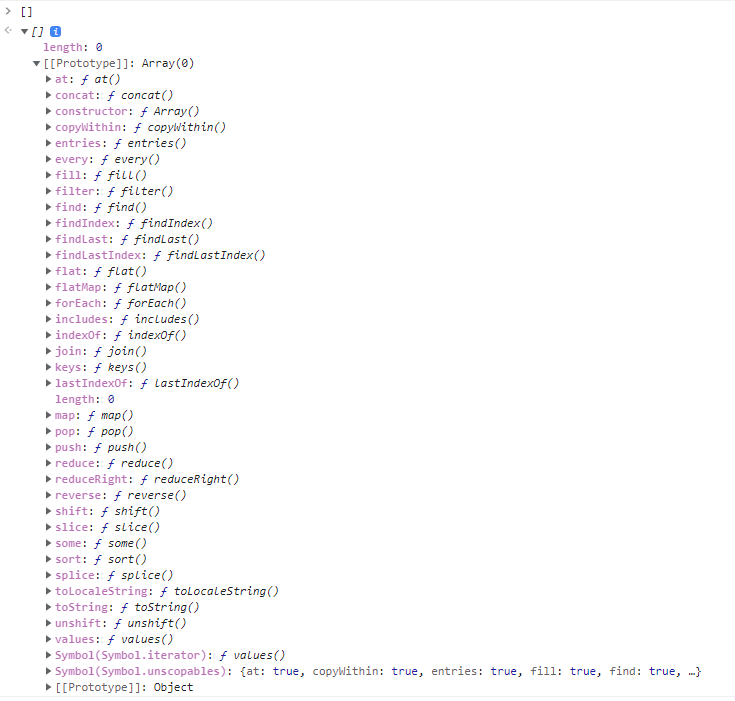 엔진에서 자동적으로 new Array()를 쳐준것이다. 밑쪽에 보면은 밑에 [[Prototype]] : Object가 하나 더있다.
