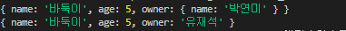 const dog = { name: '바둑이', age: 5, owner: yeonmi };