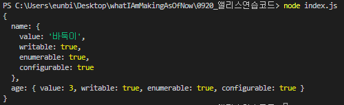 // enumerable: true, //이거를 주석처리하면 fullName함수가 보이지 않는다.