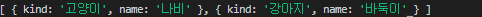 //처음에 들어오는 애만 나옴. //결과 : { kind: '고양이', name: '나비' }