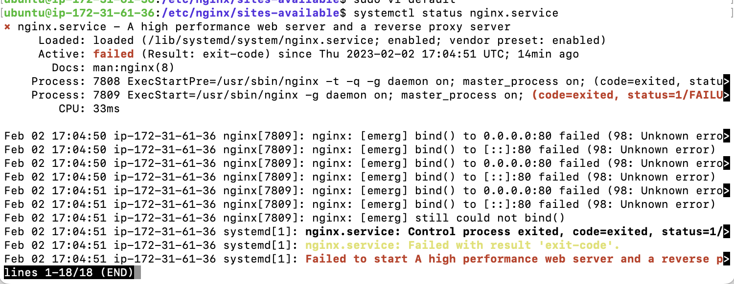 80포트 누가 쓰고있는지 확인 : sudo netstat -anp | grep LISTEN | grep :80 => 엔진엑스가 쓰고있다고 나옴