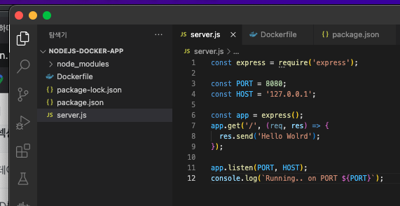 실행 : docker run -p 8080:8080 smilejenny/nodejs (local의 8080과 docker의 8080을 연결시켰다)