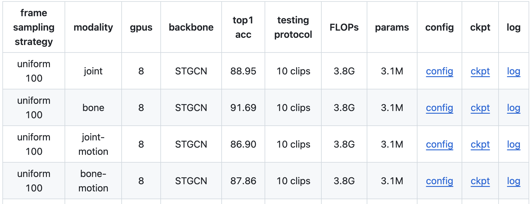 관련 사이트: https://github.com/open-mmlab/mmaction2/blob/main/configs/skeleton/stgcn/README.md