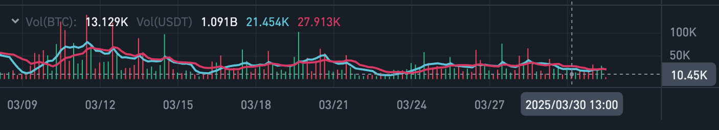 이는 해당 시간대(2025년 3월 30일 13:00)에 13,129 비트코인이 거래되었음을 의미한다.